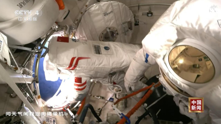 本次出舱活动由乘组01号航天员张陆和02号航天员武飞承担舱外作业工作,二人分别身着红色条带舱外航天服D和蓝色条带舱外航天服E,使用“问天”实验舱气闸室作为出入通道。